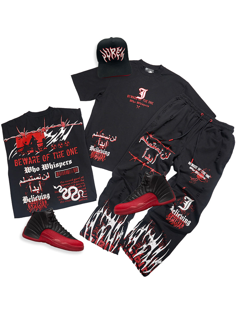 Beware of The One Black T-Shirt, Jogger and Trucker Hat Combo (Shoes Not Included)