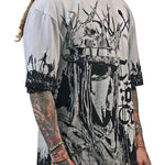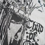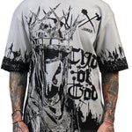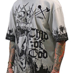The Child of God Grey T-Shirt features a striking medieval king depicted on a battlefield, rendered in black artwork that contrasts sharply against the soft grey fabric. Gothic letters spell out "Child of God," adding a bold, historical aesthetic to this shirt. Crafted with attention to detail, the design evokes strength and reverence, making it a meaningful piece for those seeking both style and symbolic expression. Its comfortable fit and timeless imagery make it ideal for everyday wear or as a standout addition to your wardrobe.