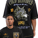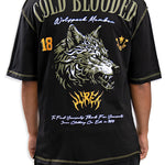 The Cold Blooded T-Shirt combines bold design with premium comfort. This black oversized tee features the Juren logo on the front, accented by an olive patch for a subtle yet distinctive touch. On the back, a large gel print showcases the phrase "Cold Blooded" above an intense, angry wolf head graphic, creating a striking visual statement. Crafted for those who appreciate edgy streetwear with expert attention to detail, this shirt offers both style and durability for everyday wear.