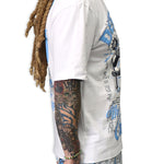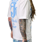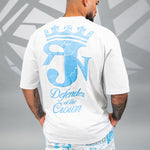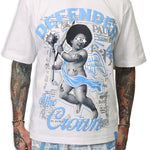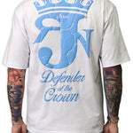 With an oversize defender of the crown Angel print and subtle Carolina blue coloring, this tee is sure to catch the eye. The juren crown logo on the back adds a touch of royalty, while the slight torn edges give it a unique touch. Plus, with the official juren-co label, you'll know you're getting a high-quality product. Heavy Cotton makes the shirt unique and royalty.