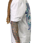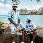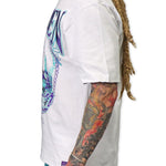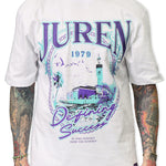 Stay cool and confident while showing off your dedication to Juren's success. With a soft, heavy cotton build and stylish torn edges, this Defining Success Tee is perfect for everyday wear. The oversized Moroccan Oasis design on the front features the iconic Juren name in bold purple and teal embroidery, while the back showcases the Juren Battle Club and Axe logo. Plus, our official label on the bottom hem adds a touch of authenticity. Join the Juren company and elevate your wardrobe with this exclusive tee.