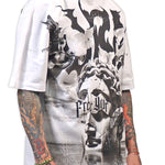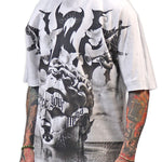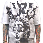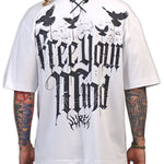 The Free Your White Grey T-Shirt features a striking design of a statue head emerging from water, reaching towards the sky surrounded by angels blowing trumpets. The intricate artwork incorporates the phrase "Free Your Mind" boldly displayed across the cracked eyes and side of the head, symbolizing awakening and breaking free from constraints. Crafted from soft, breathable fabric, this shirt offers both comfort and style, making it ideal for those who appreciate artful expression and thoughtful apparel. Perfect for casual wear or as a conversation starter, it invites you to embrace freedom in thought and spirit.