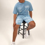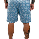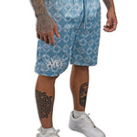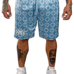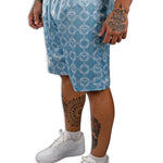 Friso AOP Silk Shorts in Frost Blue (Silk) feature an all-over print showcasing the Juren logo, creating a distinctive and cohesive design. Crafted with attention to detail, these shorts also include expertly embroidered Juren branding, adding a refined touch. The knit fabric ensures comfort and flexibility, making them ideal for both casual wear and active lifestyles. Their unique pattern and quality construction reflect a commitment to style and durability, perfect for those seeking standout pieces with a professional finish. Frost blue Silk Shorts. Big & Tall Available.
