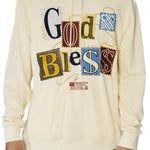 Our "God Bless Hoodie" is a celebration of faith and fashion. Immerse yourself in the artistry of patchwork-style collaged letters spelling out a powerful message. Crafted for comfort and adorned with unique detailing, this hoodie is more than apparel; it's a statement of blessing.
