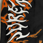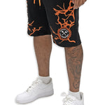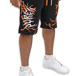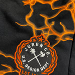 The Heart of Lightning Shorts combine dynamic design with high-performance functionality. Crafted in black fabric, these athletic shorts feature vibrant orange cords and striking orange lightning motifs on the sides, rendered in durable gel printing for a bold, lasting effect. The left side showcases the Juren logo embroidered in crisp white, while the right side is adorned with a distinctive Juren logo wreath patch, adding a refined touch. Designed for athletes seeking both style and comfort, these shorts offer a perfect balance of breathability and flexibility to support your active lifestyle. Black Shorts.