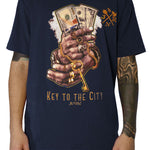 Introducing our "Key to the City" Navy Tee – a blend of style and empowerment. This unique design features hands holding money with a symbolic key attached, reflecting your success and unlocking opportunities. Stay fresh while making a statement. Grab yours now and wear the key to your achievements! 🌟💰🔑
