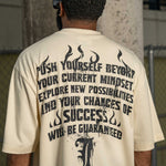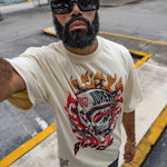 Ride into the unknown with the Bikers Club Natural Tee, a rugged piece that captures the spirit of adventure and rebellion. The front features a striking print of a skull wearing a helmet, set against blazing flames with lightning bolts shooting from its eyes—a fierce nod to the fearless biker lifestyle. Below, "Biker Club" is embroidered, adding a textured touch that stands out. The back is filled with compelling verbiage, ending with the motivating line: “Explore new possibilities and your chances of success will be guaranteed.” This tee embodies the daring essence of those who push boundaries and live life on their own terms.