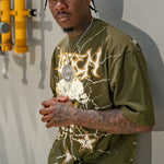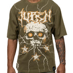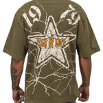 Make a bold entrance with the Star Of Life Olive Tee, a standout piece that merges vintage rock aesthetics with modern streetwear vibes. The front is fully printed with the Juren logo set above a menacing skull, accented by scattered stars that add a touch of mystique. On the back, a full print features a striking "1979" with lightning bolts spread across and a giant star declaring "Star Of Life." The olive colorway brings a unique twist, giving this tee a rugged, yet stylish look that’s perfect for those who thrive on fearless fashion.