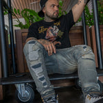 The "Time To Eat Black Tee" boasts a bold graphic: a jaguar hungrily consuming money. Against the backdrop of sleek black fabric, this image symbolizes ambition and the pursuit of wealth. Perfect for those with a hunger for success, this tee makes a statement about seizing opportunities and embracing abundance. Wear it confidently to showcase your drive