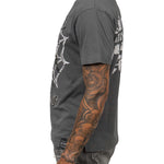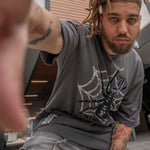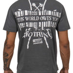 Embrace a blend of gritty and graphic with the World Owes You Gray Wash Tee, a standout piece with a unique edge. The front features a felt spider perched atop an intricate web, creating a striking visual that’s both eerie and captivating. The iconic "bleeding J" is embroidered, alongside the bold statement "Nothing in This World Owes You Nothing," adding a raw, rebellious touch. The back boasts a full-size print of a broken barcode with the powerful message "This World Owes You Nothing," reinforcing the tee’s theme of self-reliance and resilience. With its gray wash and eye-catching design, this tee makes a statement about independence and strength.