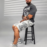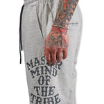 Mastermind Of The Tribe Shorts are designed with a durable and comfortable fabric, perfect for athletic activities. The elastic waistband and cords provide a customizable fit that allows for a full range of motion, making it ideal for any workout. The dark grey mastermind of the tribe print on the left side and juren club and axe logo printed on the right side add a touch of unique style to your workout gear. Additionally, the two back pockets provide storage for your essentials, making these shorts both functional and fashionable.