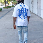 Stay stylish and on top of trends with our Organized Chaos Tee. Featuring a sleek white design with blue accents, this tee perfectly matches the latest sneaker releases. Get organized and stay fashion-forward with this must-have addition to your wardrobe.