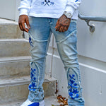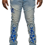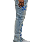 Discover the timeless style and comfort of Royal World Jeans. These head-turning denim jeans feature intricate embroidered details and frayed edges for a touch of edge. Made with a blend of 98% cotton and 2% elastane, these slim fit jeans offer a hint of stretch for ultimate comfort. Size up for a relaxed fit/ jeans are cut slightly small. Available in a light blue wash.