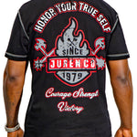 This True-self Distressed Tee is made of heavyweight 100% cotton for superior quality. The front logo features raised embroidery and gel print, while the back boasts a full print. With reversed inside stitching on the collar and sleeves, this shirt is perfect for matching with black/red sneaker colorways.