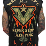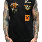 Designed for the bold and built for the grind, the Warrior Dept. Muscle Tee by Juren brings tactical edge to your rotation. Crafted from heavyweight 230gsm 100% cotton, this piece features finished arm hems for a clean, athletic look. The front hits include multiple embroidered patches, while the oversized puff print graphic on the back carries the "See No Evil" emblem and "Never Stop Believing" motto. Distressed details throughout add character without compromising structure.
