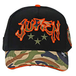 This isn’t your average trucker — the Warrior Dept. 5-Panel breaks the mold with a structured, mesh-free crown for a modern twist on a classic silhouette. Built for bold expression, it features a satin camo-embroidered Juren patch front and center, with three-star embroidery underneath for a military nod.