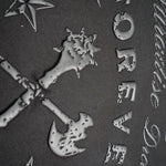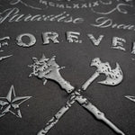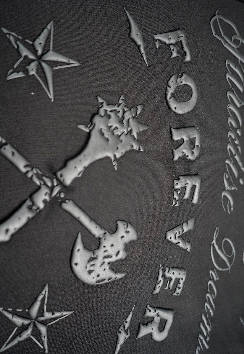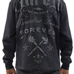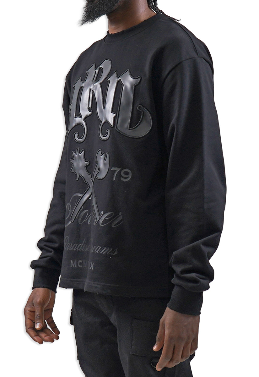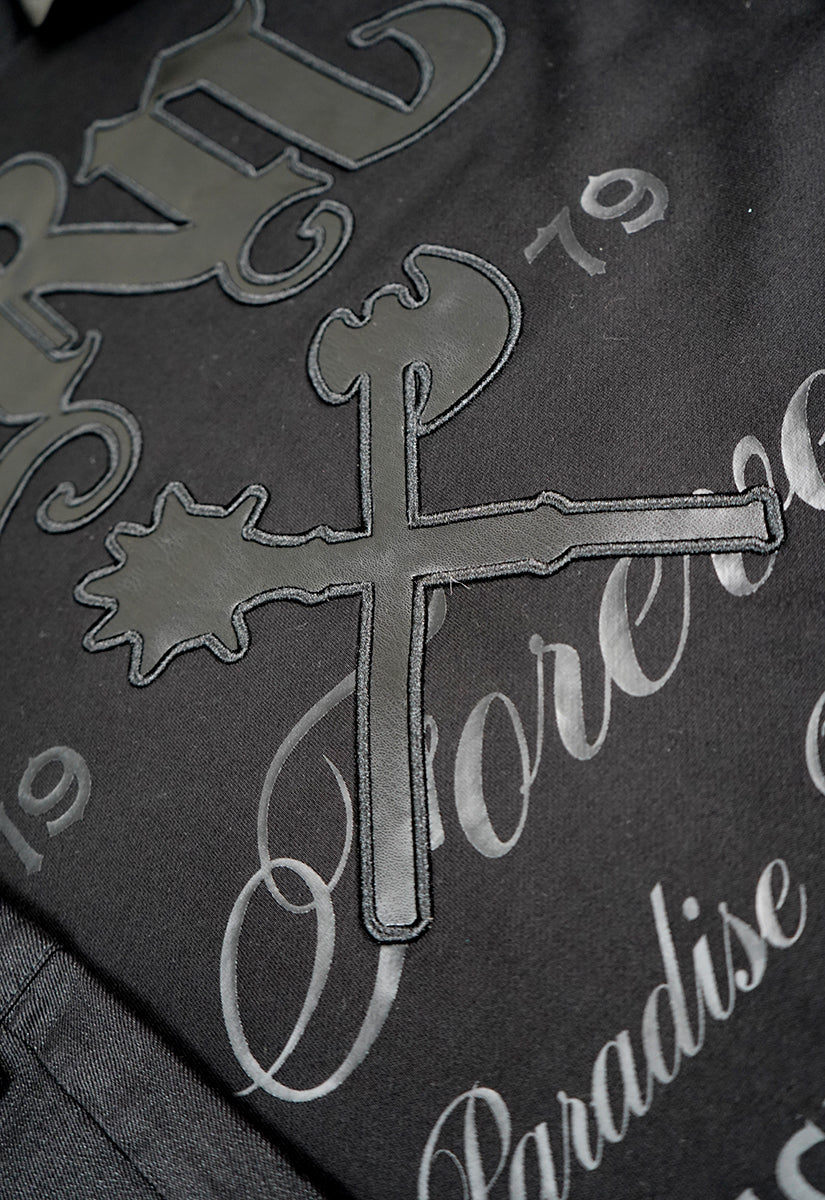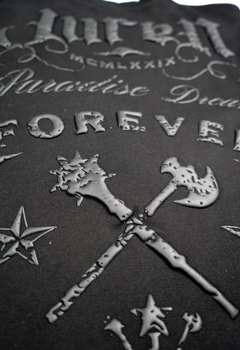 The JUREN FOREVER BLACK CREWNECK represents a bold statement piece designed for those who embrace authentic streetwear culture. This all-black crewneck features the iconic JRN Battle Axe Forever logo rendered in premium leather on both the front and back, creating a striking visual contrast against the fabric. The centerpiece showcases an expertly executed gel puff print of the JUREN logo, complemented by the "Paradise Dream" and "Battle Axe Forever" text positioned beneath. The combination of leather detailing and dimensional gel puff printing demonstrates meticulous craftsmanship, while the dual-placement branding ensures visibility and impact from every angle. Perfect for layering or wearing as a standalone piece, this crewneck delivers the distinctive aesthetic that defines the JUREN brand identity.