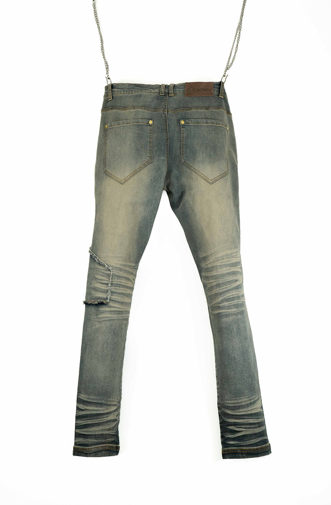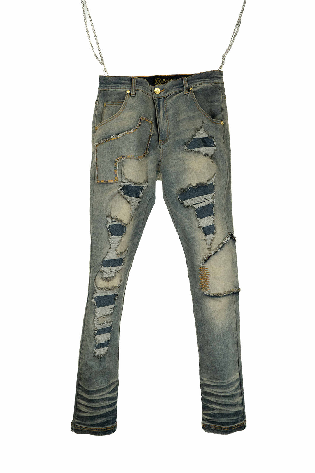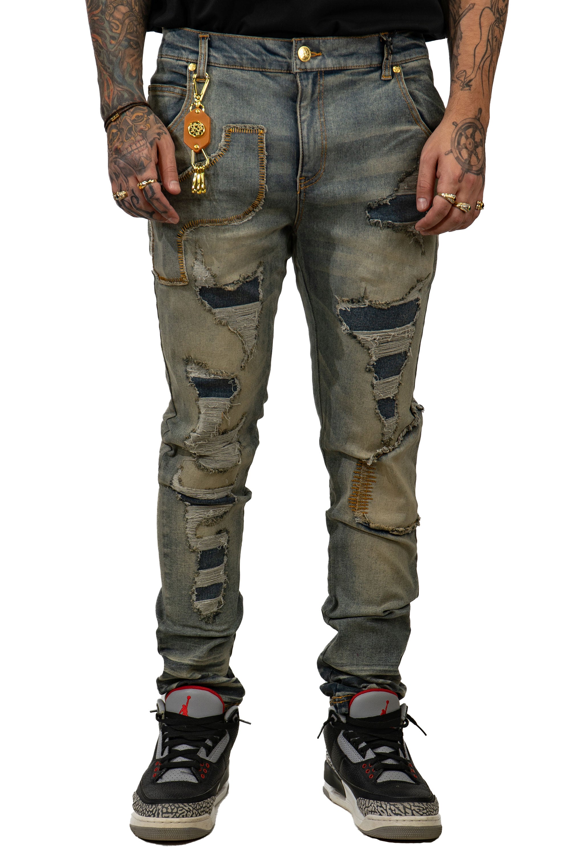 The "Brazzen Medium Wash Denim Jean" redefines casual cool with its blend of rugged destruction, intricate cut and sew details, and attached keychain accessory. Crafted for both style and durability, these jeans boast a distinctive medium wash that adds character to any ensemble. Perfect for those who appreciate urban edge with a touch of functionality, wear them confidently to showcase your individuality and flair.