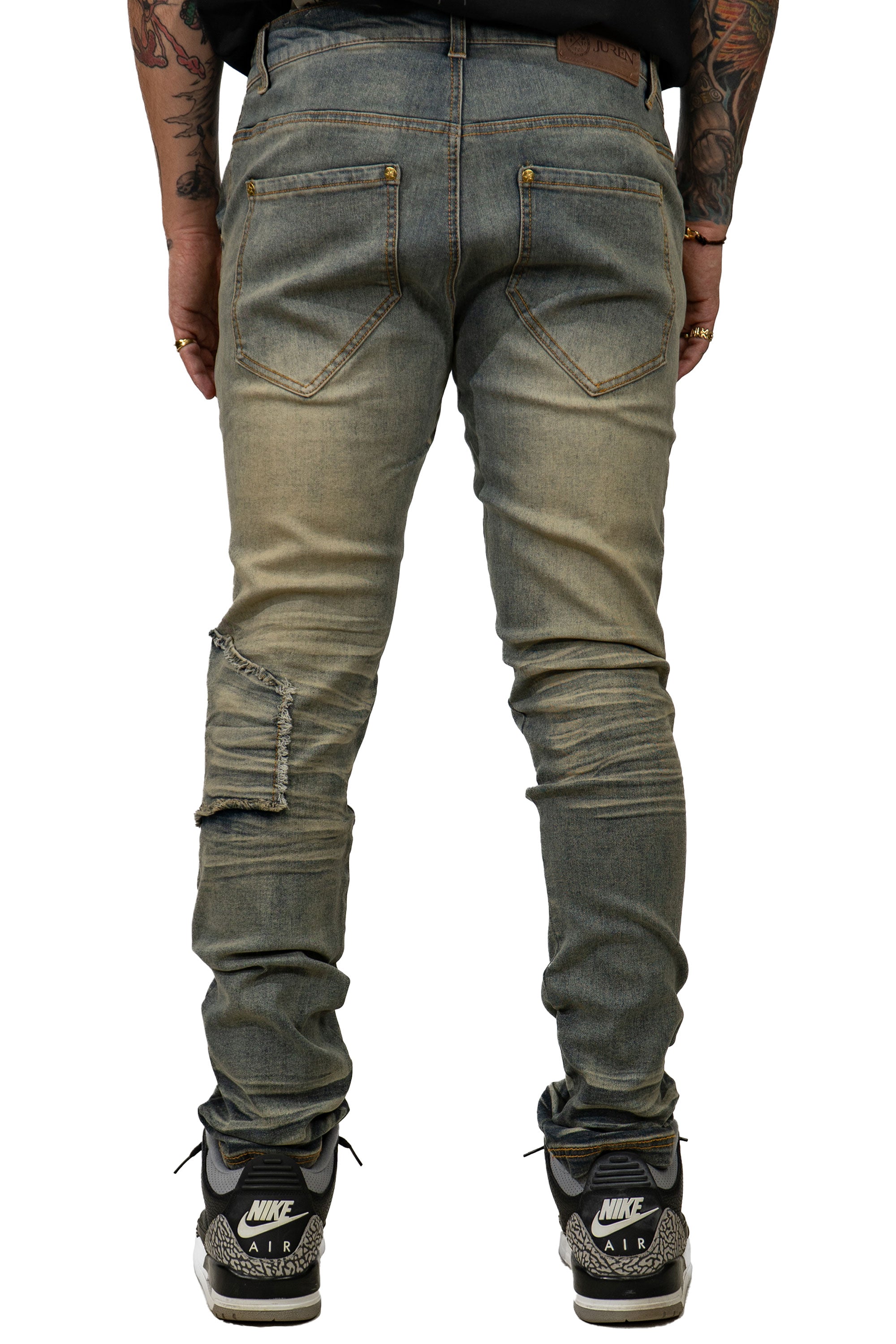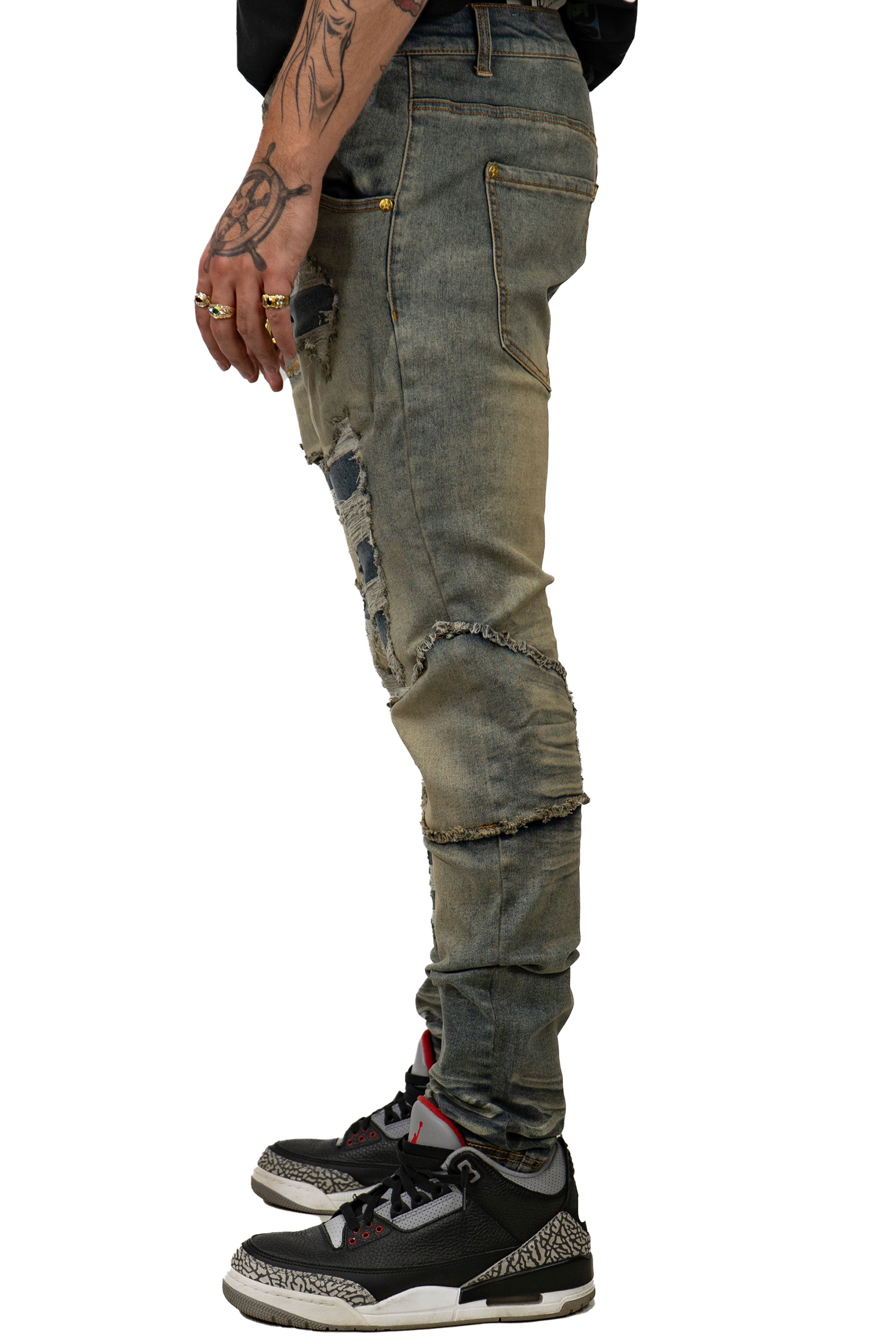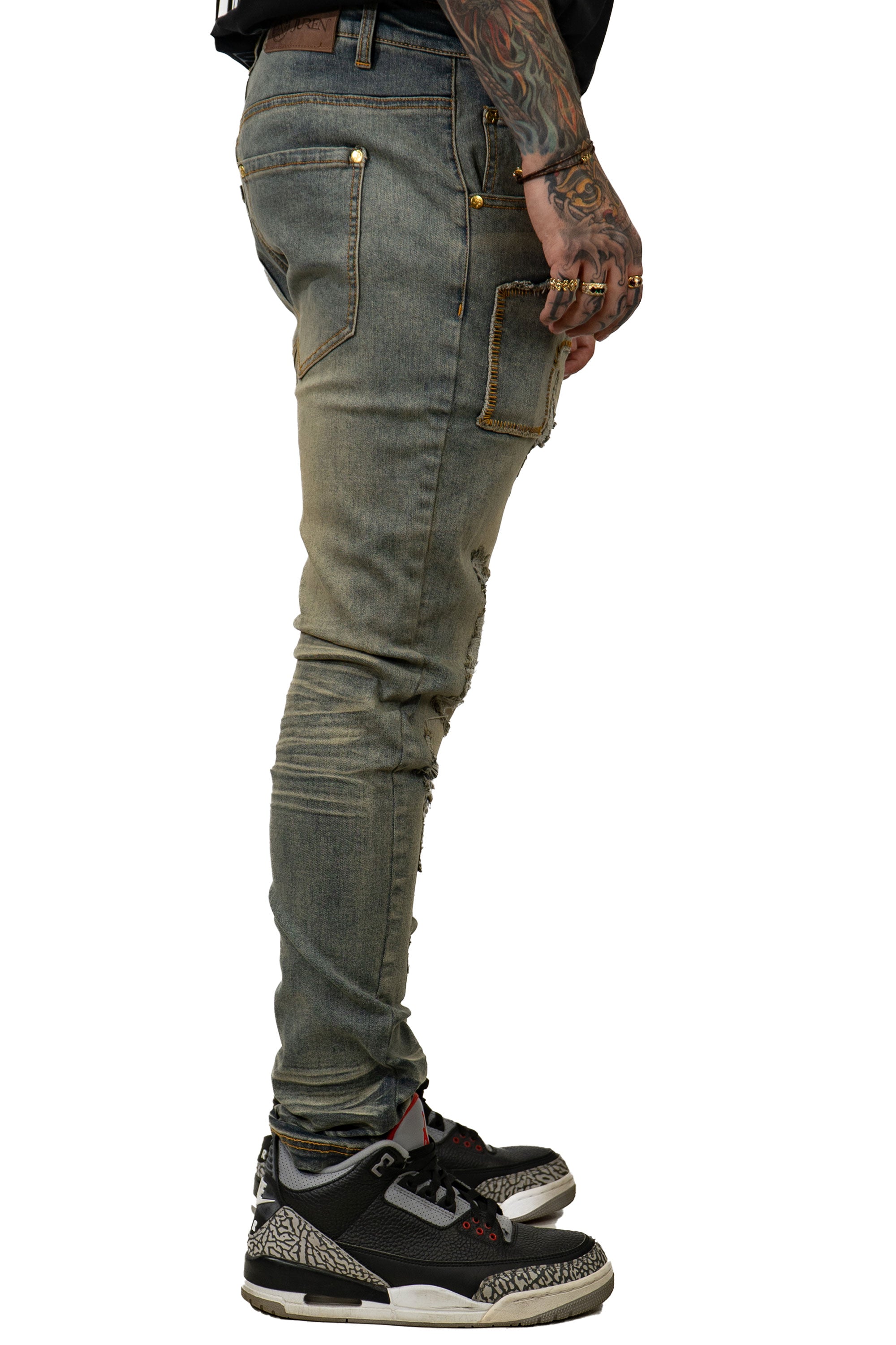 The "Brazzen Medium Wash Denim Jean" redefines casual cool with its blend of rugged destruction, intricate cut and sew details, and attached keychain accessory. Crafted for both style and durability, these jeans boast a distinctive medium wash that adds character to any ensemble. Perfect for those who appreciate urban edge with a touch of functionality, wear them confidently to showcase your individuality and flair.