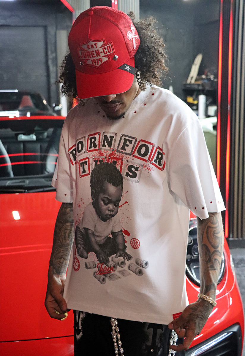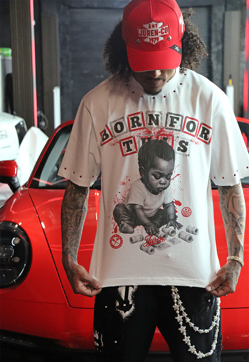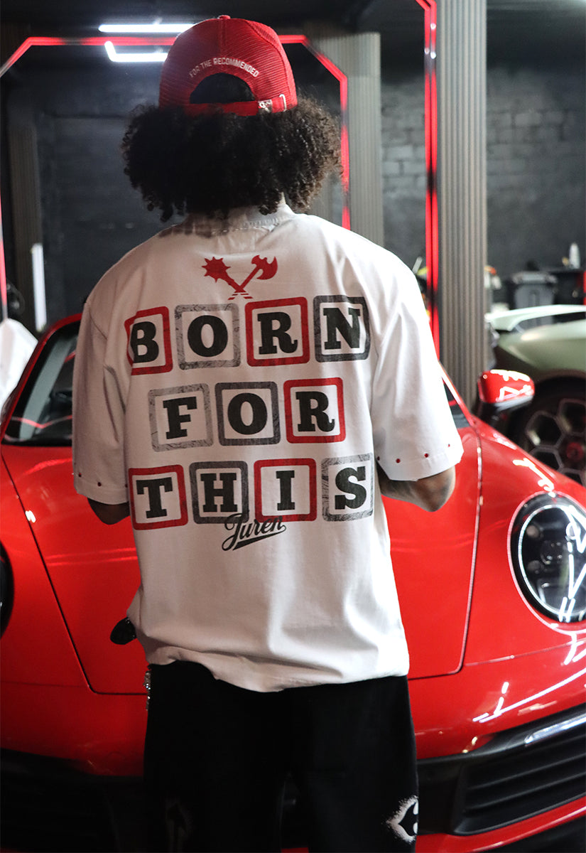 Introducing the Born For This White Shirt—a bold statement piece from Juren Clothing. This crisp white tee features an eye-catching graphic of a baby surrounded by rolls of money and colorful building blocks spelling out "BORN FOR THIS" across the chest. The design continues on the back with the same empowering message in block lettering, while the iconic Juren signature sits subtly underneath. Perfect for those who embrace ambition and confidence, this shirt combines playful imagery with a powerful message. Made for everyday wear, it's a conversation starter that celebrates success and self-belief.