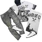 Child of God White T-Shirt, Grey Denim Jeans and Leather Trucker Hat Combo (Shoes Not Included)