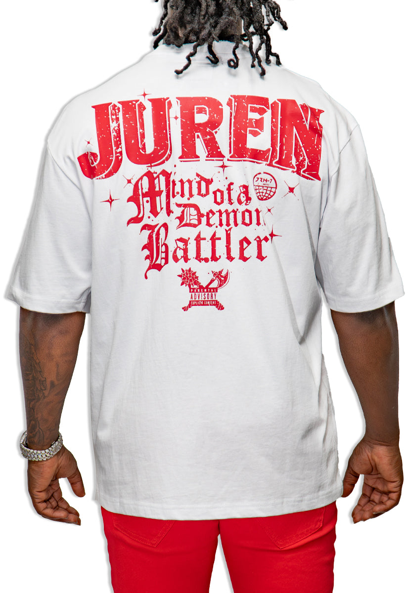 Truly one of a kind, this tee features a vibrant and stylish design that showcases the Juren name and logo in a bold red color. Whether it's for casual wear or as a way to represent your favorite entertainment franchise, this Heavyweight Tee is the perfect way to show off your love for Demon Battler. With a powerful and iconic image, this tee is truly the ultimate choice for any fan.