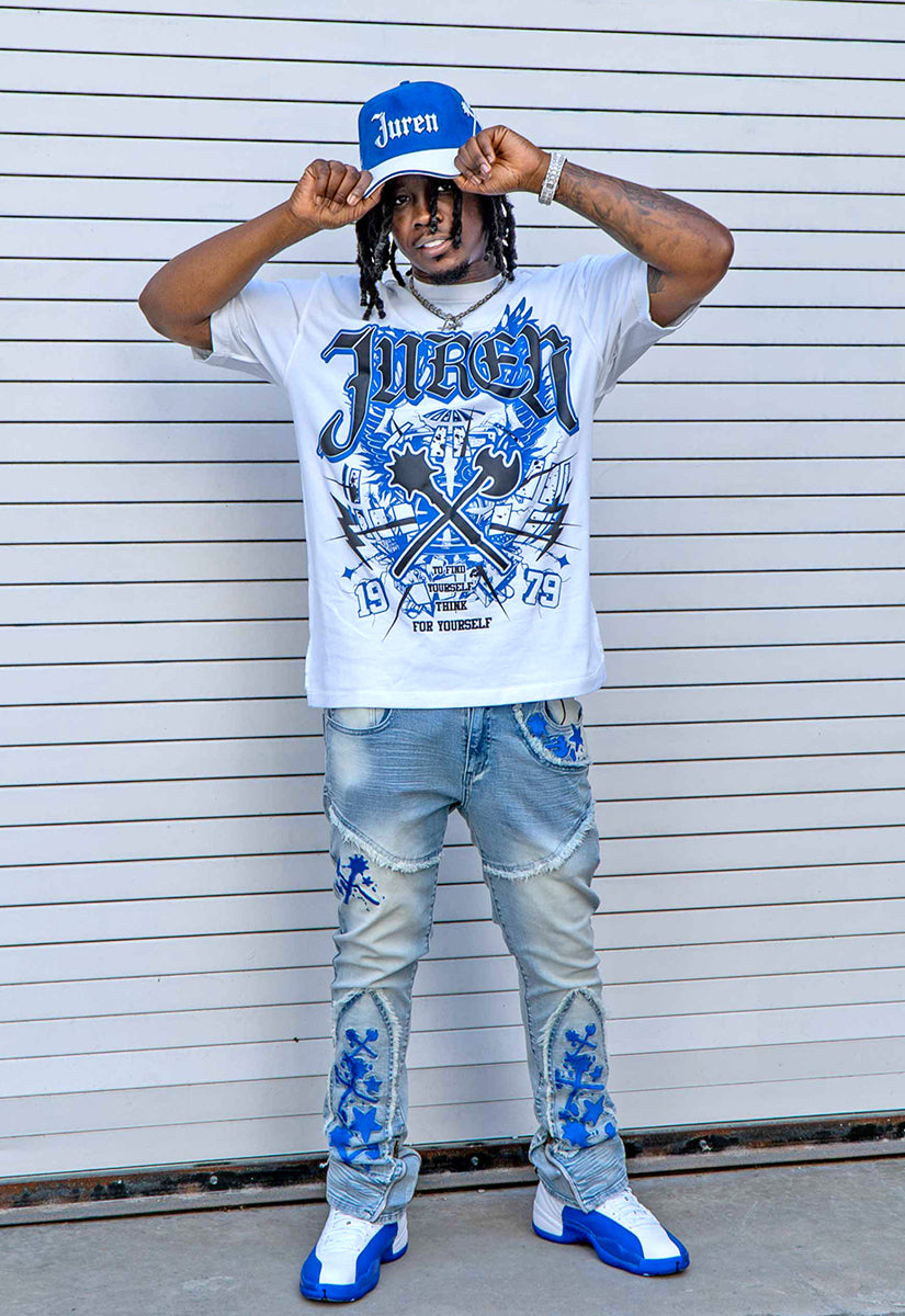 Stay stylish and on top of trends with our Organized Chaos Tee. Featuring a sleek white design with blue accents, this tee perfectly matches the latest sneaker releases. Get organized and stay fashion-forward with this must-have addition to your wardrobe.