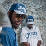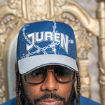 Elevate your casual wardrobe with the True Prosperity Trucket Hat, designed in a stylish French blue complemented by a sleek grey visor. This expertly crafted cap features the distinctive white puff embroidery of the Juren logo, adding a textured dimension that highlights brand authenticity. Enhanced with a subtle grey barbed wire print around the crown, it combines modern edge with classic trucker style. Lightweight and breathable, the hat provides comfortable wear all day while making a bold fashion statement for those who value both quality and unique design.
