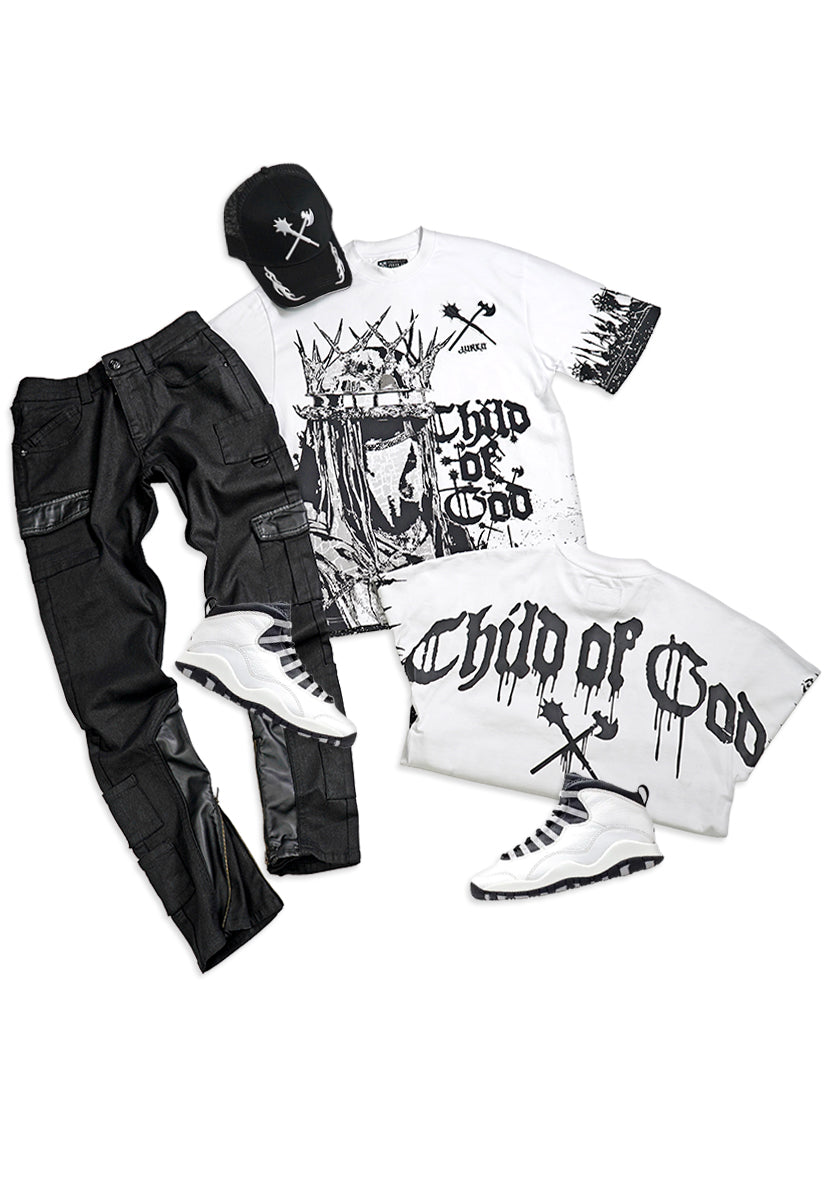 Child of God White T-Shirt, Black Denim Jeans and Leather Trucker Hat Combo (Shoes Not Included)