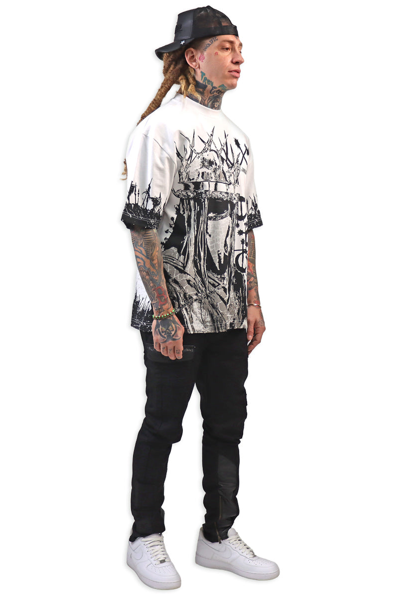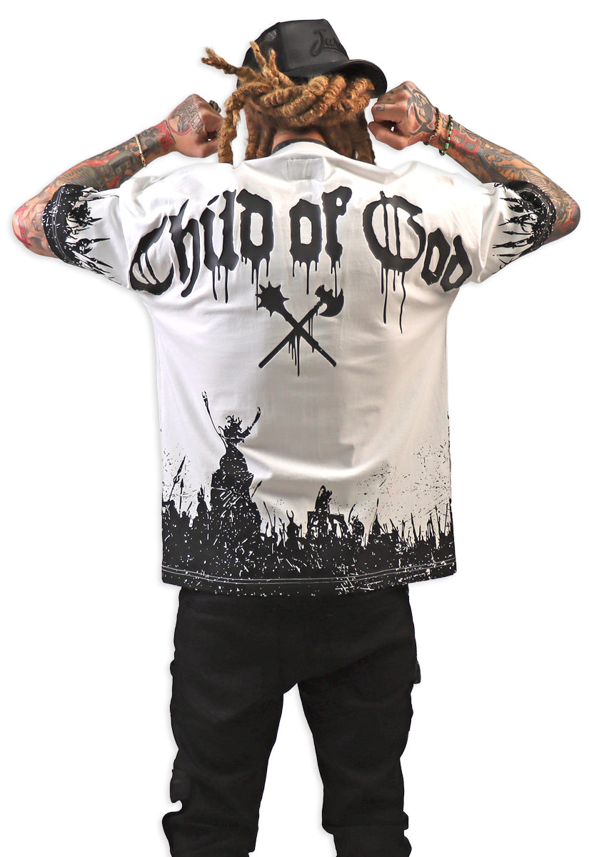 Child of God White T-Shirt, Black Denim Jeans and Leather Trucker Hat Combo Include: