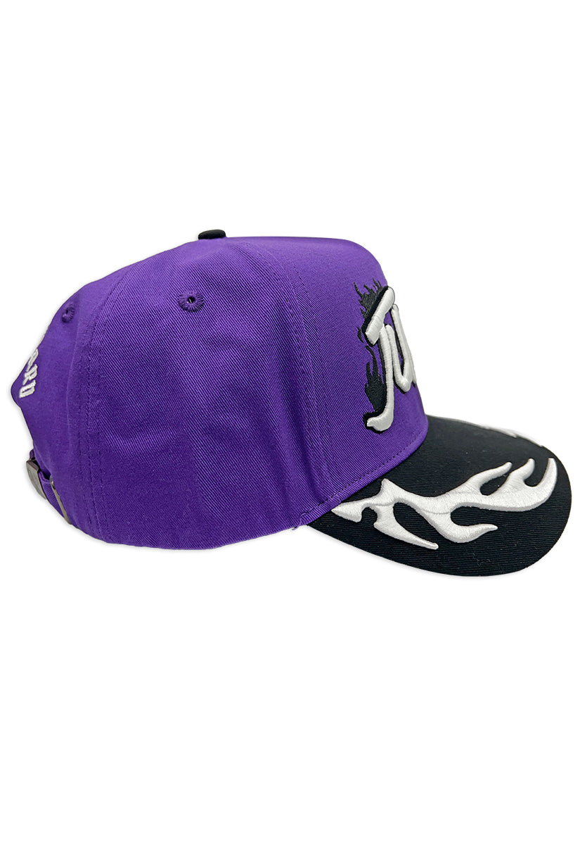 The No Risk No Reward Purple Trucker Hat combines bold style with expert craftsmanship. Featuring a vibrant purple crown contrasted by a sleek black rim, this hat commands attention. The front showcases the iconic Juren logo and twin flame motifs, both rendered in detailed white puff embroidery for a textured, standout effect. Designed for both comfort and durability, the breathable mesh back offers ventilation, making it perfect for extended wear. Whether you're out for casual days or making a statement, this hat merges striking aesthetics with practical design, embodying the spirit of taking risks for greater rewards.