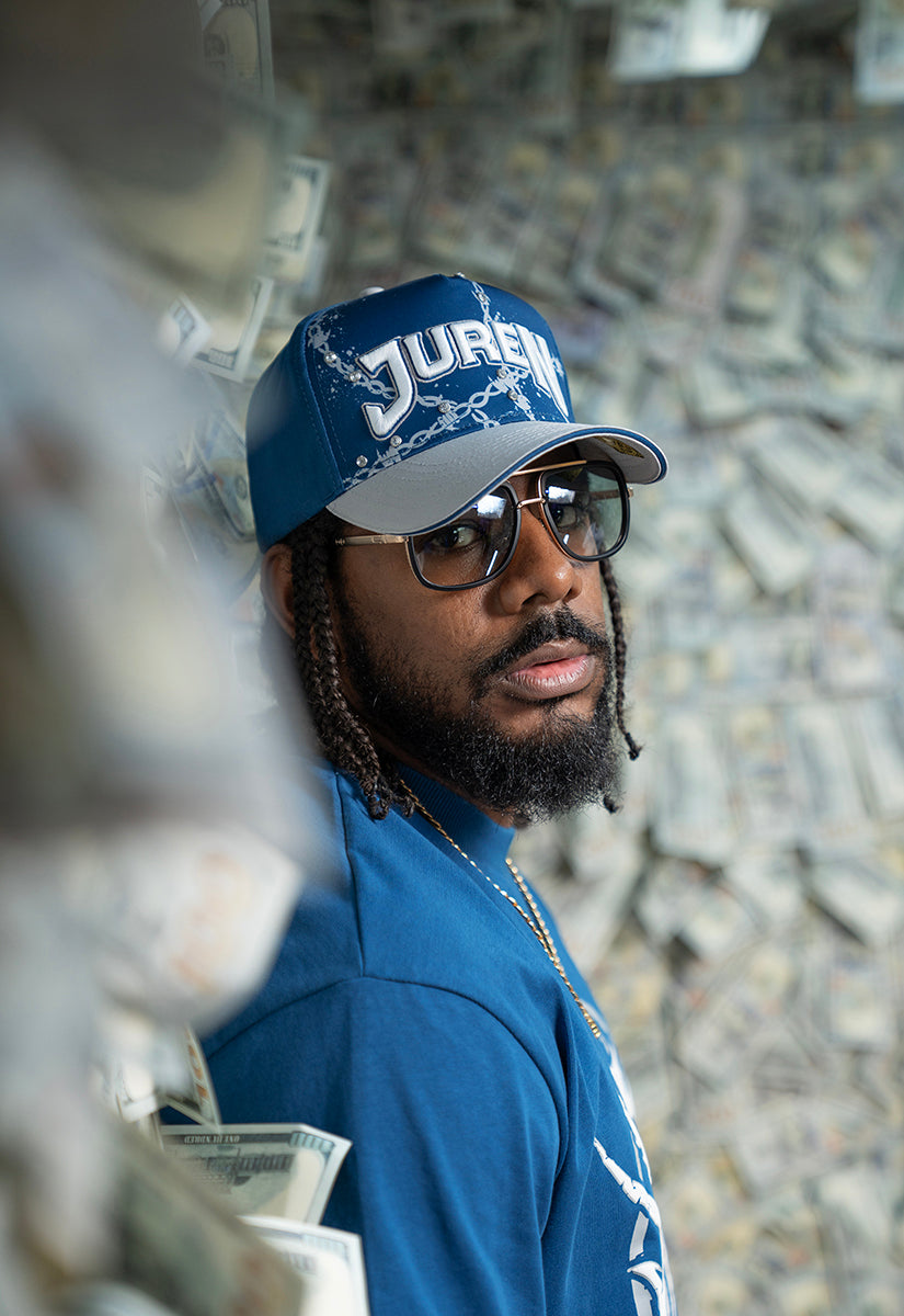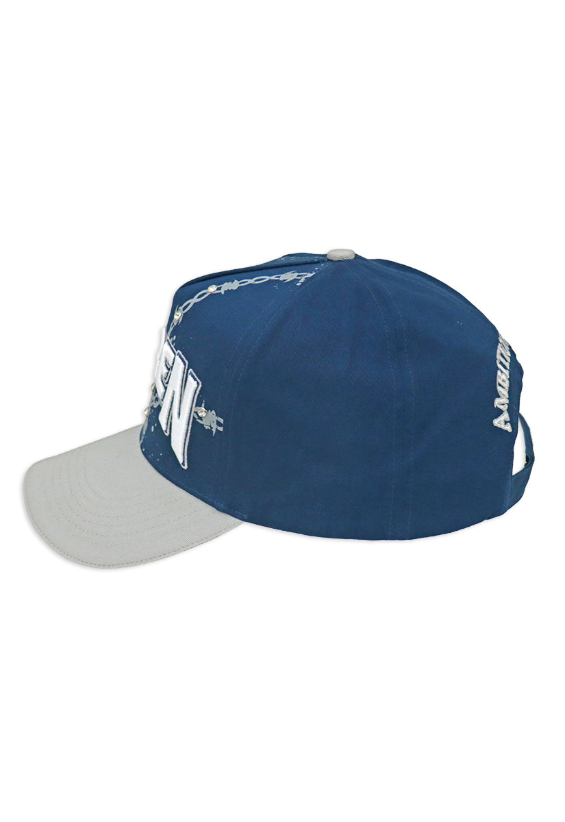 Elevate your casual wardrobe with the True Prosperity Trucket Hat, designed in a stylish French blue complemented by a sleek grey visor. This expertly crafted cap features the distinctive white puff embroidery of the Juren logo, adding a textured dimension that highlights brand authenticity. Enhanced with a subtle grey barbed wire print around the crown, it combines modern edge with classic trucker style. Lightweight and breathable, the hat provides comfortable wear all day while making a bold fashion statement for those who value both quality and unique design.