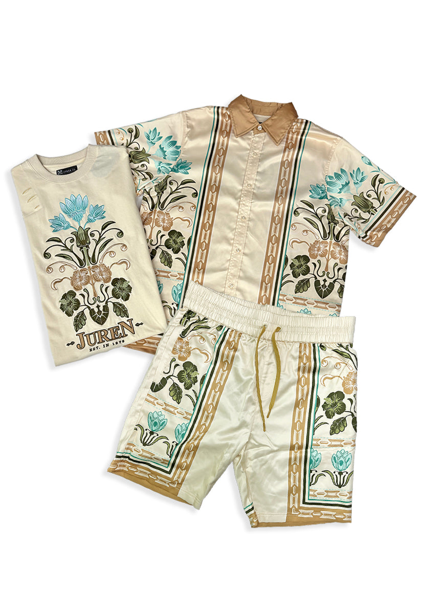 Elegant Arrangement Button Up Shirt, Shirt and Shorts Combo Include: