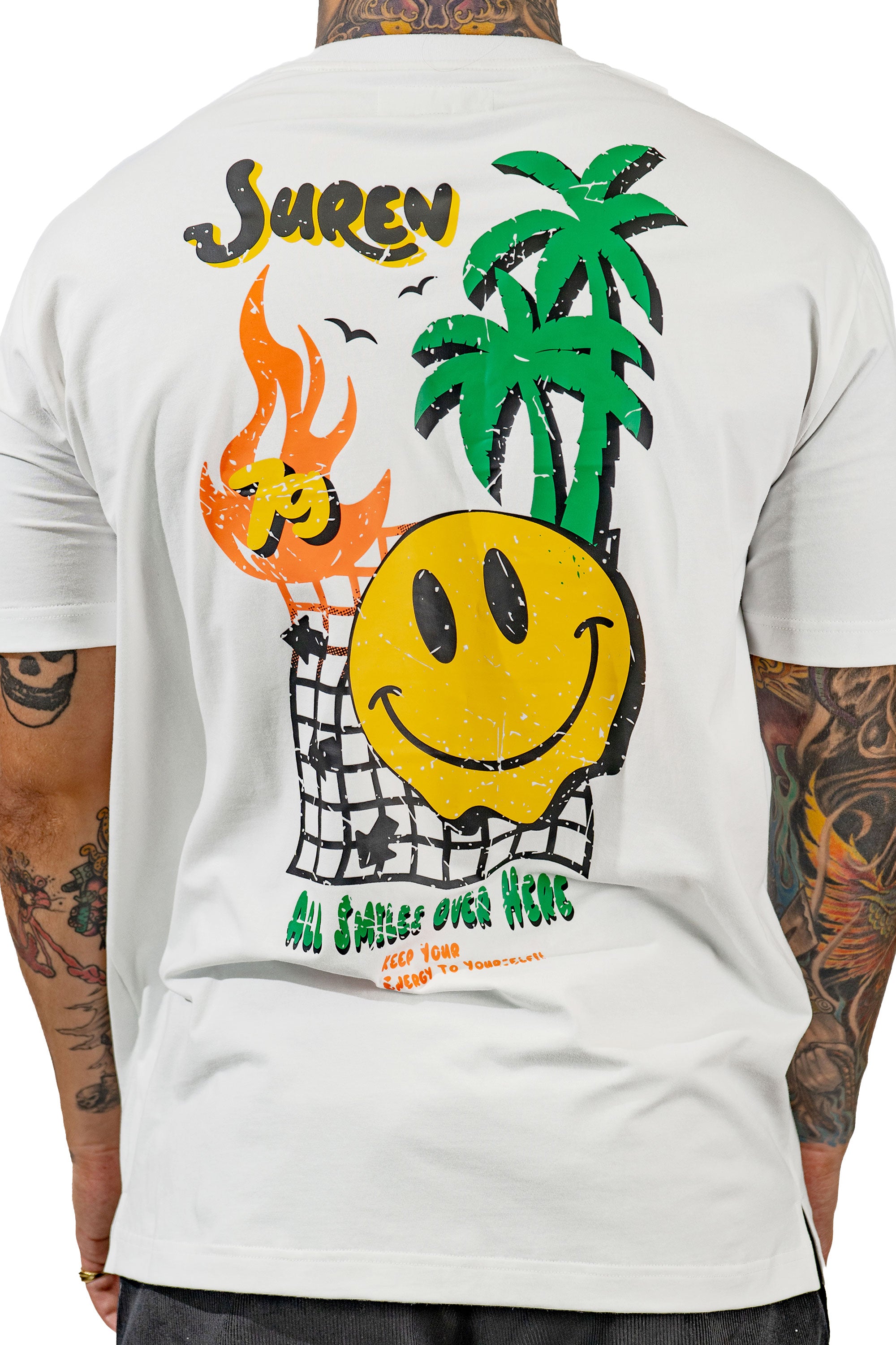 Embrace positivity with our "All Smiles Over Here" White Tee. Crafted from soft and breathable fabric, this tee offers comfort all day long. The minimalist design features a subtle "All Smiles Over Here" graphic, adding a touch of charm to your outfit. Whether you're lounging at home or hitting the streets, this tee is perfect for spreading good vibes wherever you go. Pair it with your favorite jeans or shorts for a casual yet stylish look. Stay comfy and cheerful with the "All Smiles Over Here" White Tee.