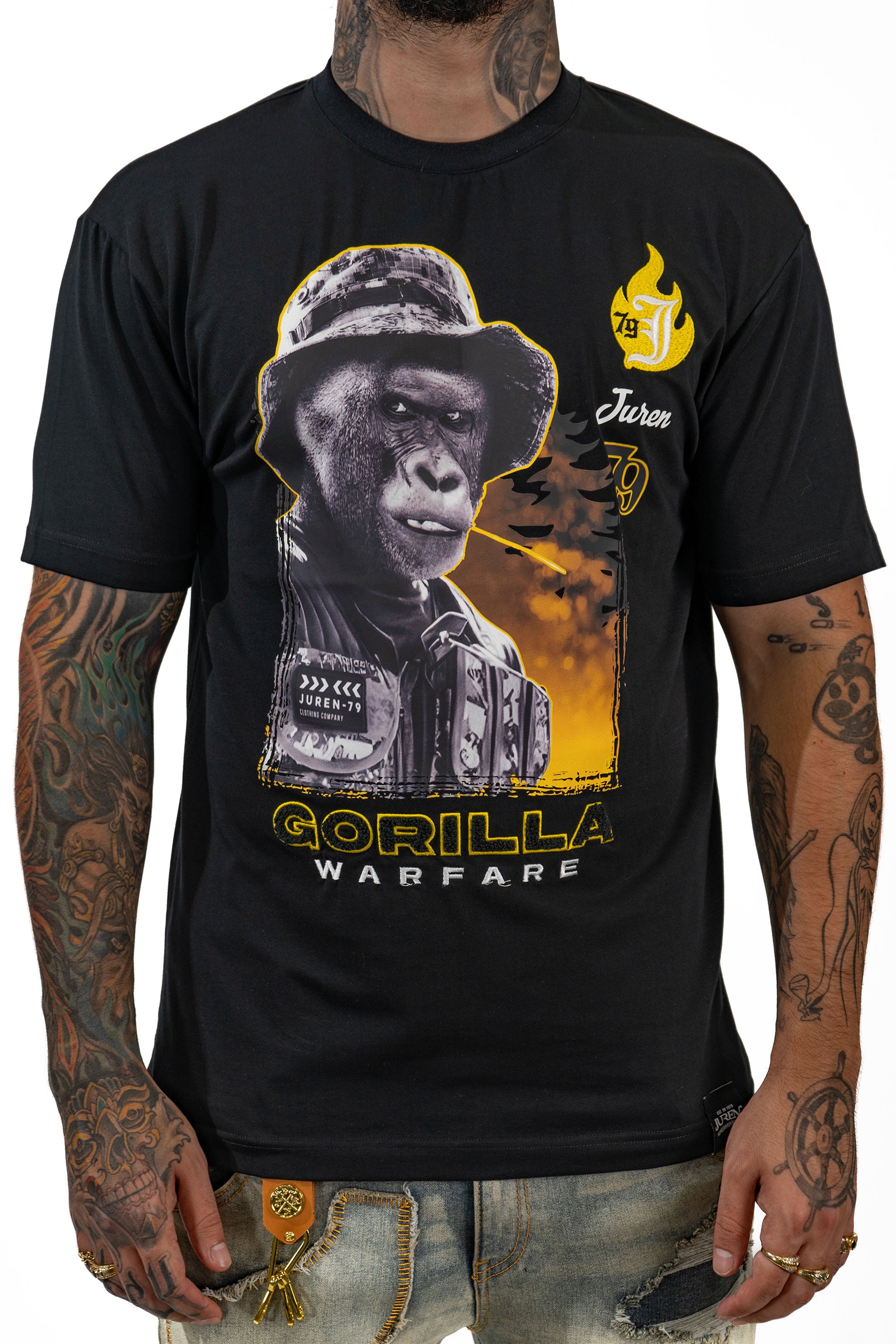 Introducing our "Gorilla Warfare" Tee in Black, elevated with chenille and embroidery detailing. Crafted for those who command attention, this tee features a bold gorilla graphic rendered in intricate chenille and embroidery, adding depth and texture to your look. Made from premium materials, it ensures both comfort and durability for your everyday wear. Whether you're on the urban battlefield or embracing your wild side, let our "Gorilla Warfare" Tee be your symbol of strength and style. 🦍💥👕