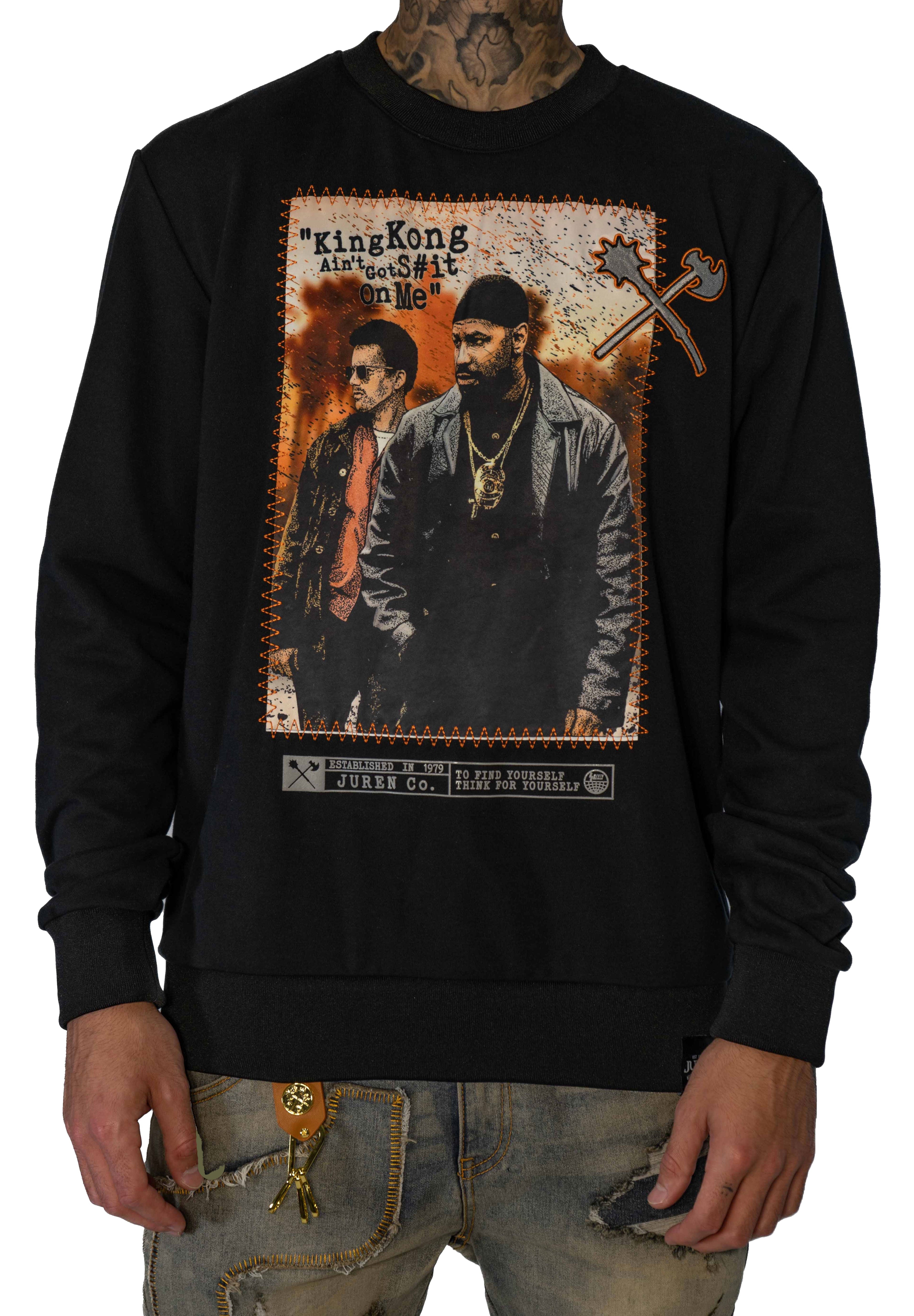The "King Kong Black Crewneck Sweater" channels the spirit of urban grit and intensity, reminiscent of iconic scenes from a certain film. Crafted from premium cotton this Crewneck exudes strength and confidence. With a bold image capturing the raw power of its inspiration, this sweater is the perfect choice for those who command respect and embrace the fearless spirit of the streets.