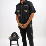Honor & Glory Button Up Shirt, Distressed Tee, Denim Jean and Trucker Hat Combo Include: