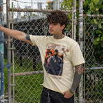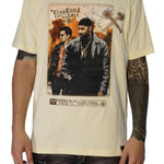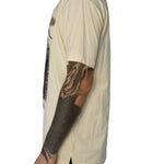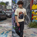 The "King Kong Natural Tee" design captures the essence of raw power and resilience, drawing inspiration from a classic film scene without directly referencing it. At the center of the tee, a bold silhouette of a towering figure emerges, reminiscent of the iconic moment of strength and defiance.