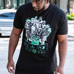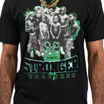 The Juren Stronger Together Embroidered Tee Black features a classic black fabric adorned with a group of young black kids standing together. The phrase "Stronger Together" is highlighted, with "stronger" rendered in plush chenille fabric and outlined with embroidery for added texture, while "together" is printed on. This tee celebrates unity and strength with a blend of tactile and printed elements, making it a powerful addition to any wardrobe.