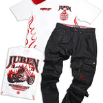 Members Only White Tee, Cement Jeans and Red Trucker Hat Combo