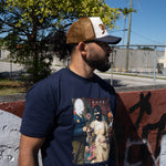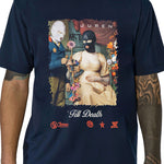 The "'Till Death Navy Tee" captures a poignant image of love and loyalty with its depiction of two figures wearing balaclavas embracing each other. Against the deep black fabric, this graphic evokes a sense of unity and strength in the face of adversity. Perfect for those who appreciate unconventional romance and edgy style, wear it proudly as a symbol of unwavering commitment and connection.
