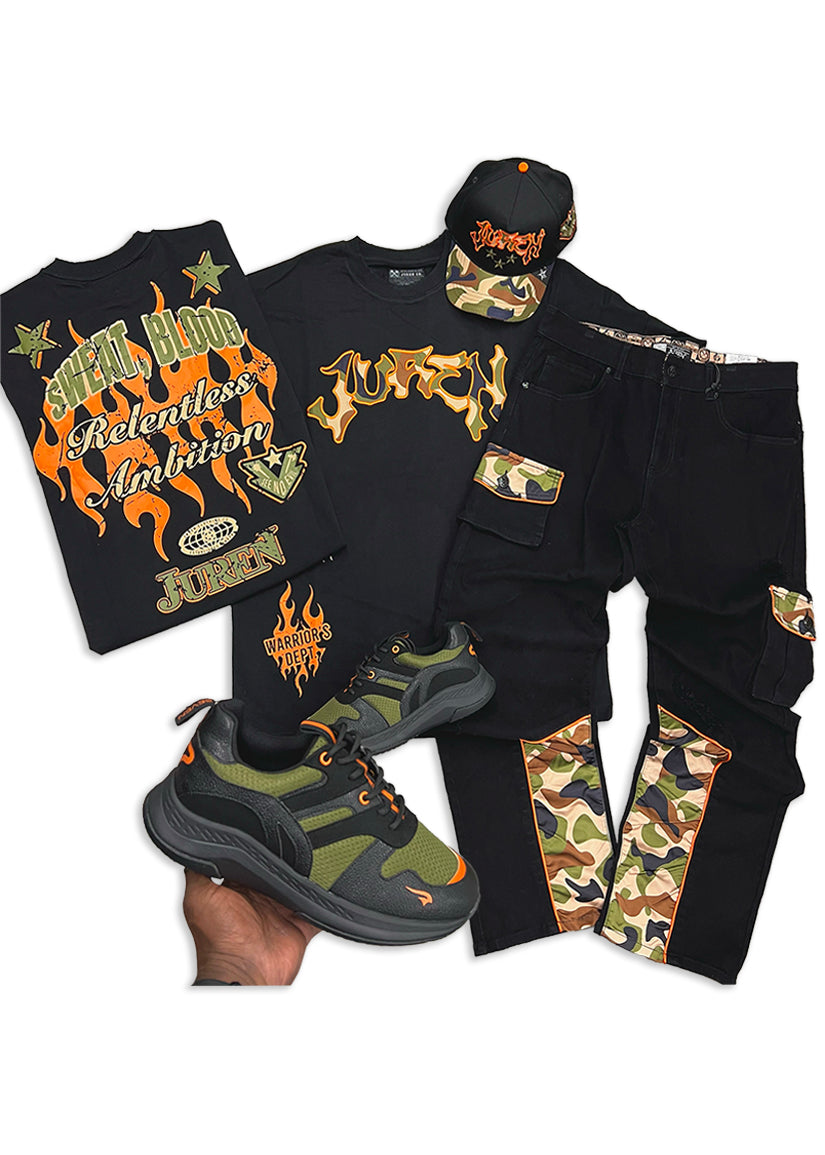 Victory Begins Heavyweight Tee, Warrior Dept.Twill Pant, Sneakers and Trucker Hat Combo
