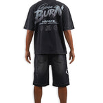 Born to Burn Washed Black Shirt - Rhinestones, Denim Jeans and Trucker Hat Combo Include: