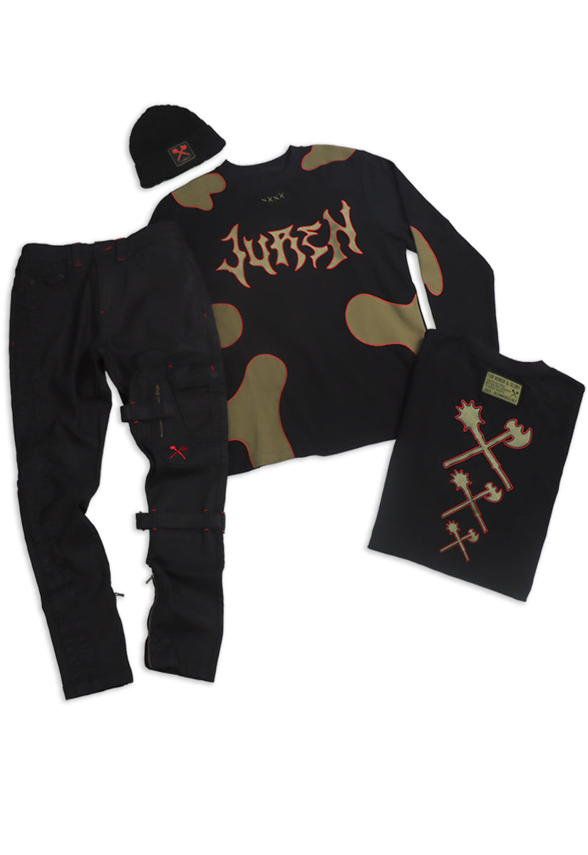 Freddy Patchwork Crewneck Sweater, Cement Jeans and Beanie Combo