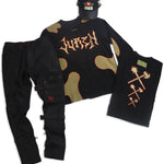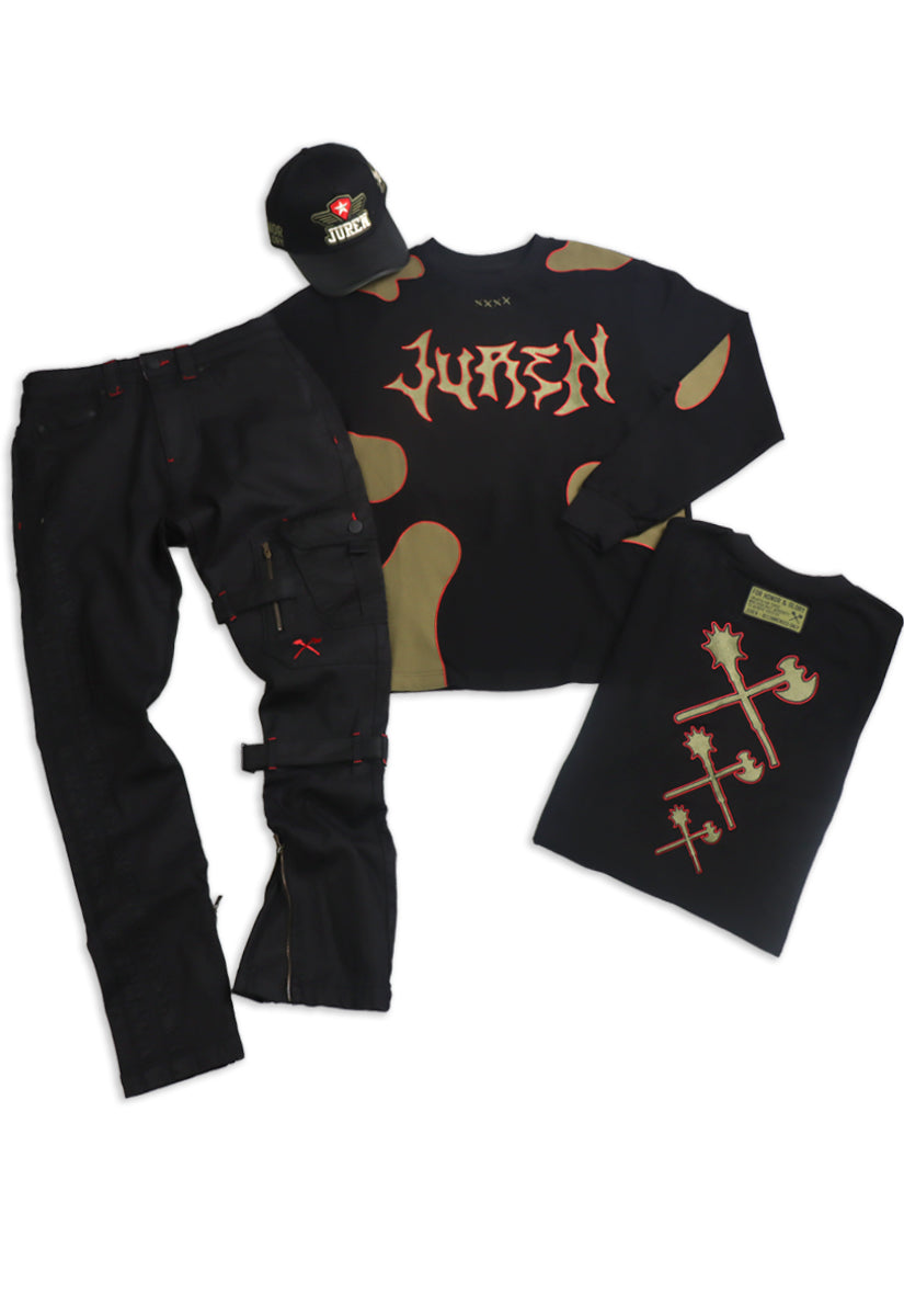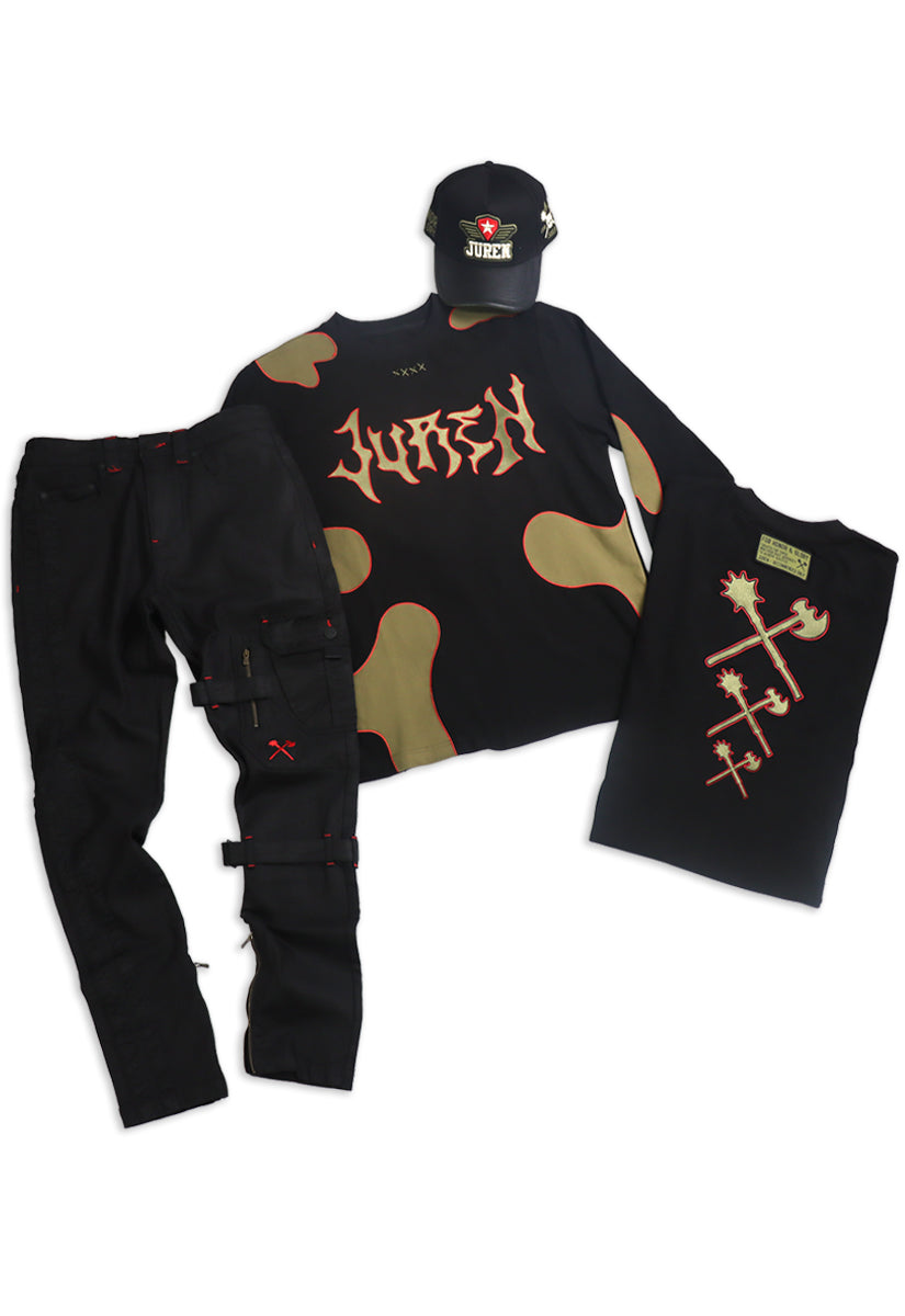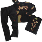 Freddy Patchwork Crewneck Sweater, Cement Jeans and Trucker Hat Combo