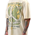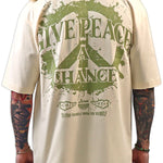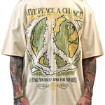 The Give Peace A Chance Cream shirt features a distinctive design combining artistic elements and a powerful message. On the front, an intricate smoke peace symbol is integrated into the typography, blending creativity with symbolism. The back showcases a bold, splattered peace symbol accompanied by the phrase "Give Peace A Chance," emphasizing a call for harmony and unity. Crafted for those who appreciate meaningful art and activism, this shirt serves as both a statement piece and a conversation starter, encouraging wearers to embrace and promote peace in daily life.