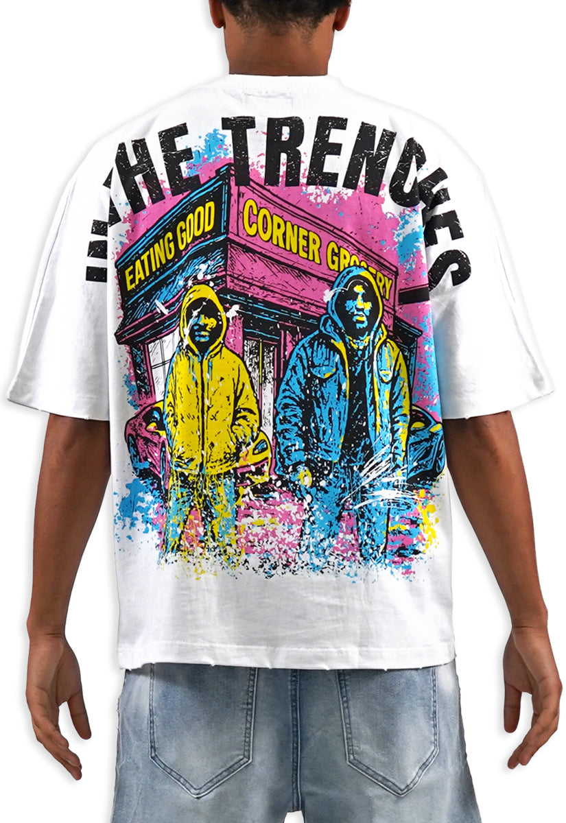 In The Trenches Shirt - Rhinestones, Denim Shorts and Trucker Hat Combo