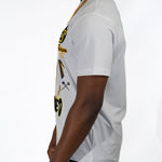 Blessed Goat" White Tee boasts elegant embroidery and luxurious chenille detailing. Crafted for style and quality enthusiasts, this tee features a bold goat graphic intricately stitched with chenille and embroidery, symbolizing strength and resilience. Made from premium materials, it offers comfort and durability for everyday wear. Elevate your wardrobe with our "Blessed Goat" White Tee. 🐐✨👕