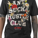 The "Anti Sucka Hustle Club" presents its signature black tee adorned with a captivating floral design. This emblematic shirt stands as a symbol of resilience and defiance against mediocrity. With its sleek black canvas and intricate floral pattern, it embodies a unique blend of strength and elegance. Join the club and wear this tee with pride, showcasing your commitment to hustle and excellence in style.
