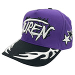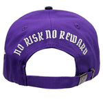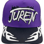 The No Risk No Reward Purple Trucker Hat combines bold style with expert craftsmanship. Featuring a vibrant purple crown contrasted by a sleek black rim, this hat commands attention. The front showcases the iconic Juren logo and twin flame motifs, both rendered in detailed white puff embroidery for a textured, standout effect. Designed for both comfort and durability, the breathable mesh back offers ventilation, making it perfect for extended wear. Whether you're out for casual days or making a statement, this hat merges striking aesthetics with practical design, embodying the spirit of taking risks for greater rewards. Purple hat with Black Rim.